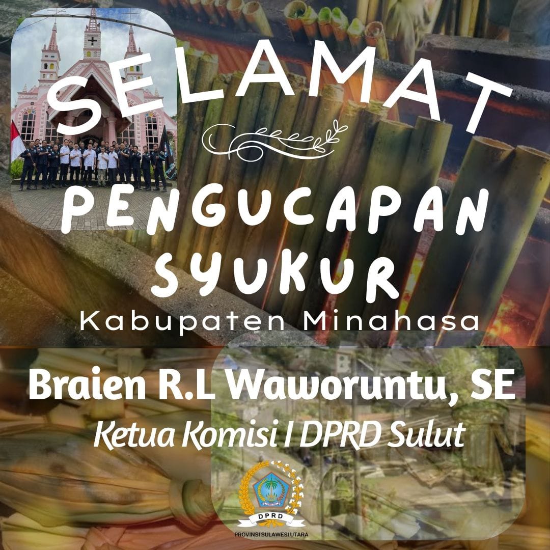 SULAWESI UTARA – Ketua Komisi I DPRD Provinsi Sulawesi Utara, Braien Waworuntu, menyampaikan ucapan selamat merayakan Pengucapan Syukur kepada seluruh masyarakat Kabupaten Minahasa.