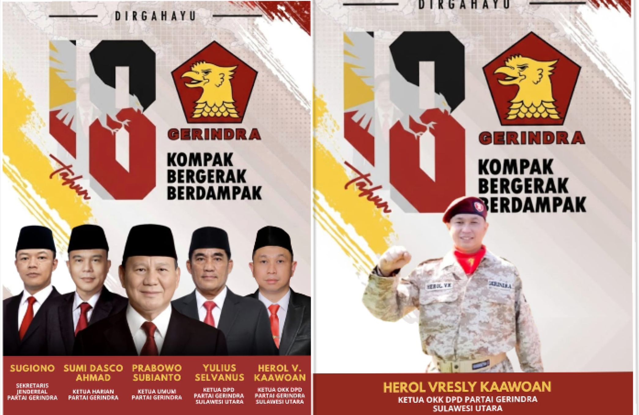 Di Sulut, Ketua DPD GERINDRA SULUT Mayjen TNI Purn Yulius Selvanus SE memimpin dengan kuat, gagah Berani.