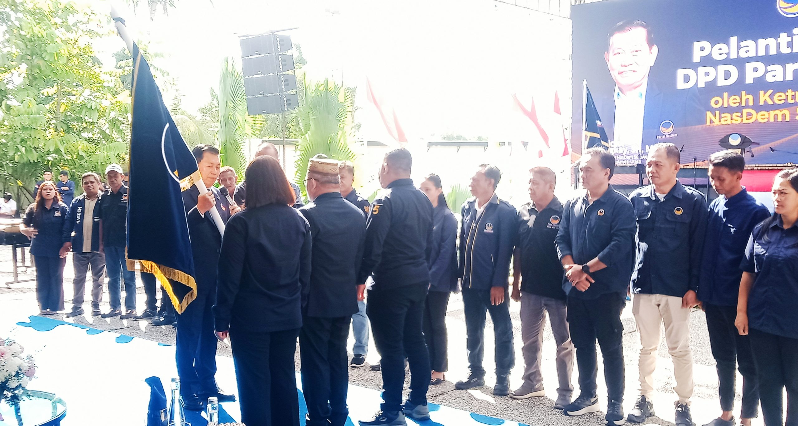 Pelantikan jajaran pengurus Partai NasDem Boltim disaksikan langsung ketua umum Partai NasDem Surya Paloh bersama jajaran DPP, DPW dan DPD se Sulawesi Utara di halaman kantor DPW NasDem Sulut.