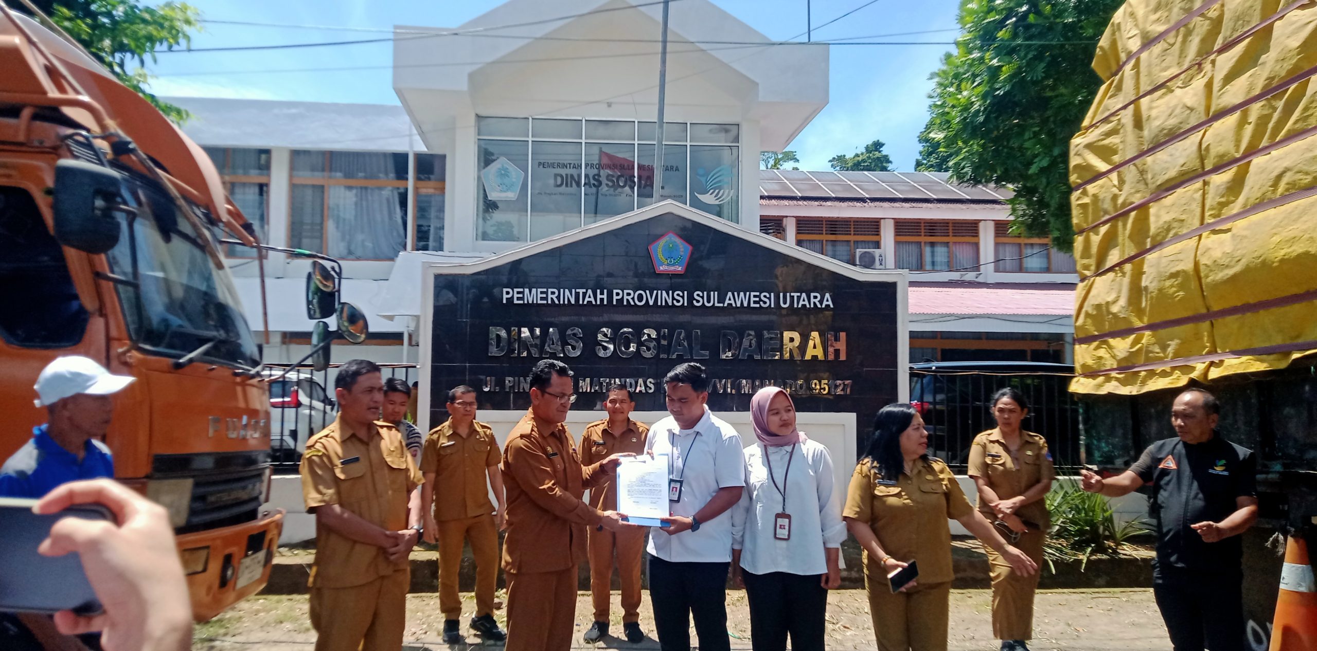Foto : Mewakili Gubernur, Plt Kadis Sosial Sulut Andra Mawuntu Meneriman Bantuan Buffer Stock Siaga Bencana Dari Kemensos RI