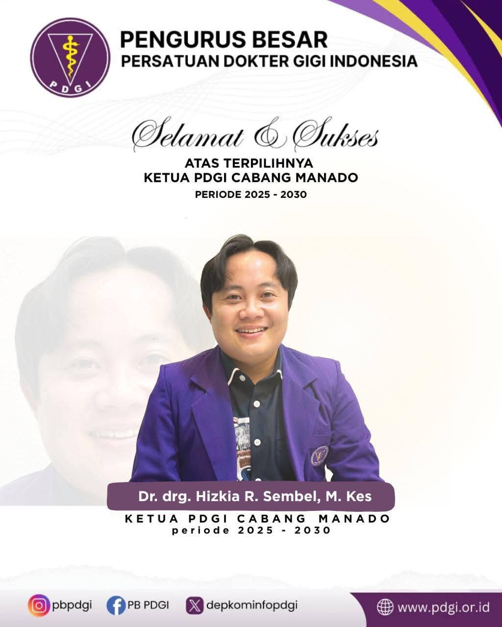 “Salah satu agenda penting organisasi dalam musyawarah cabang ini yaitu memilih Ketua PDGI Manado periode 2025-2030 dan telah terpilih secara aklamasi Dr. drg. Hizkia Sembel, M.Kes, menggantikan Ketua PDGI Manado sebelumnya yaitu drg. Victor Tengar Pamolango, MMRS, Sp.BM(K), tutur dokter Ian,” ujar Ian.